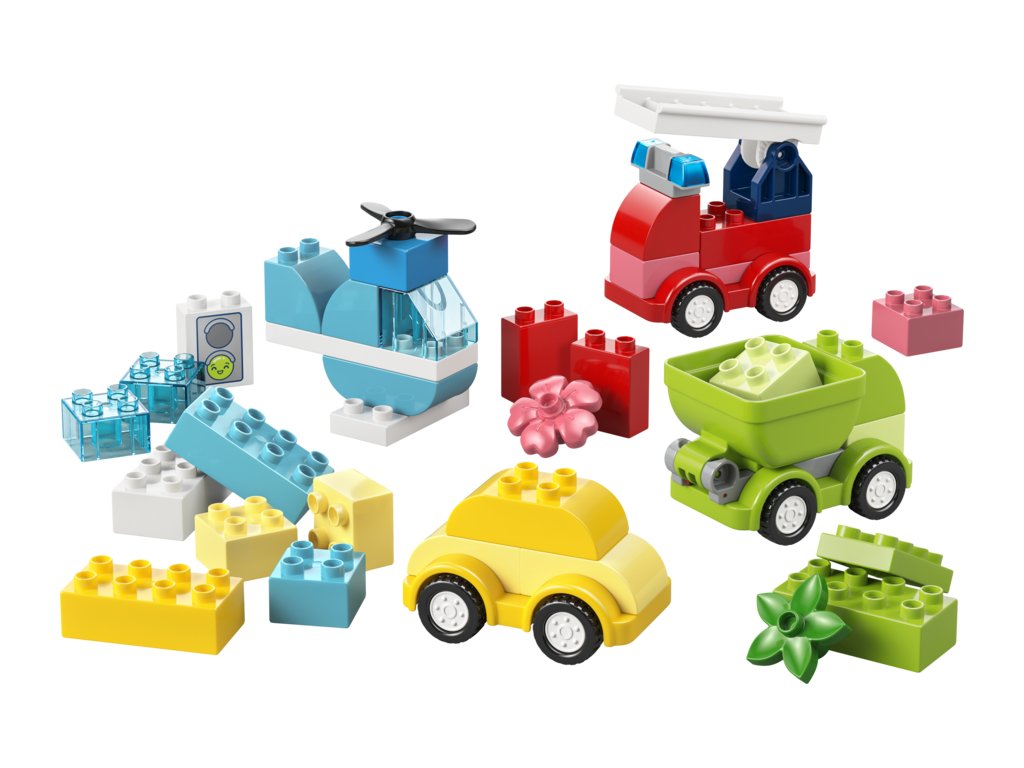 Batolata mohou popustit uzdu fantazii a kombinovat kostky LEGO DUPLO dle libosti a vytvářet nové a překvapivé modely – od policejních aut přes dlouhé nákladní vozy až po dvoupatrové autobusy.