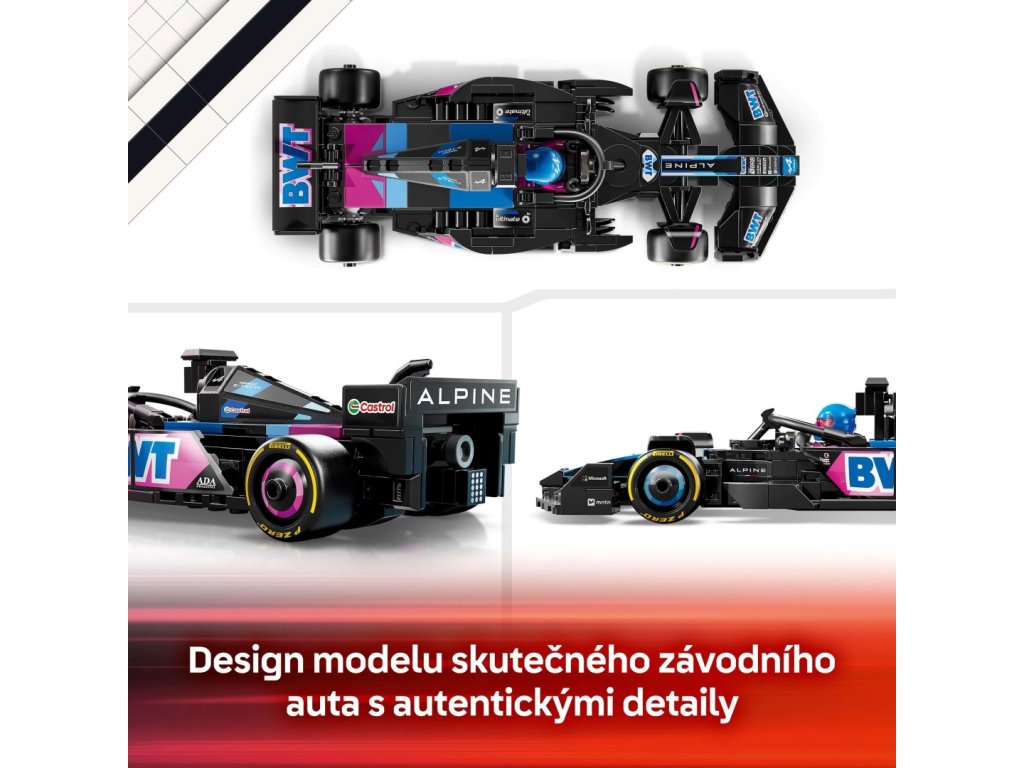 Model je navržen tak, aby podpořil kreativitu a jemnou motoriku – každý dílek má své místo a po dokončení se otevře kokpit, kde se vejde minifigurka řidiče v originálním Alpine outfitu. Díky tomu se stavění mění v hru, kde se můžete pustit do virtuálních závodů nebo jen obdivovat precizní designové prvky inspirované skutečným vozem z roku 2024.
