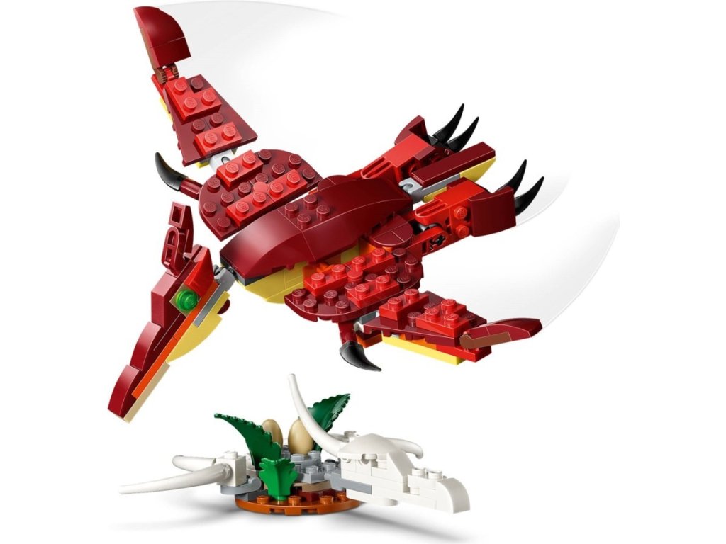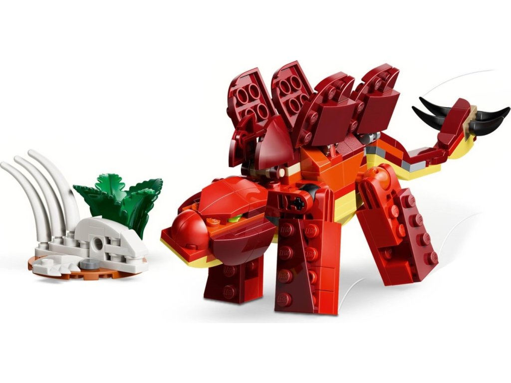 Kluci a holky si mohou postavit velociraptora s pohyblivou čelistí, hlavou, předníma a zadníma nohama a ocasem. Toho pak můžou přestavit na stegosaura, který může hýbat krkem, hlavou a nohama, nebo na pterosaura s pohyblivými křídly, hlavou a nohama. Každý z modelů je doplněn lebkou a kostrou hrudníku dinosaura, dinosauřími vejci a rostlinou. Až si děti dohrají, dinosauří model si můžou vystavit v pokojíčku, kde je budou obdivovat kamarádi i rodina. Tato stavebnice LEGO Creator 3 v 1 podnítí dětskou fantazii a představuje skvělý dárek pro milovníky dinosaurů. S aplikací LEGO Builder se děti můžou vydat na úžasné stavitelské dobrodružství. Své modely mohou přibližovat a otáčet ve 3D a sledovat pokrok ve stavění. Upozornění: Modely nelze sestavit najednou. Stavebnice obsahuje 283 dílků.