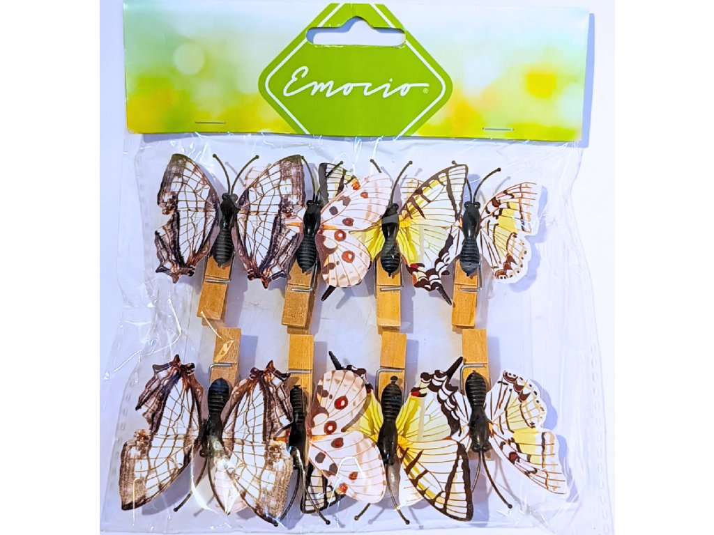 40243 Dekorace plast+dřevo 8ks 45x55mm motýli na kolíčku