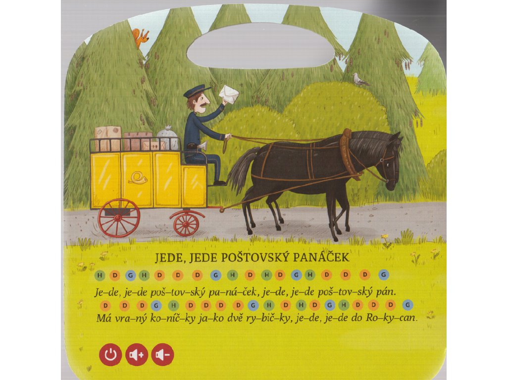V knize najdete známé písničky jako Jede, jede poštovský panáček; Pec nám spadla; Kdyby byl Bavorov; Kočka leze dírou; Travička zelená; Ovčáci, čtveráci; Holka modrooká; Skákal pes; Červený šátečku; Nestarej se ženo má; Já mám koně; Černé oči.