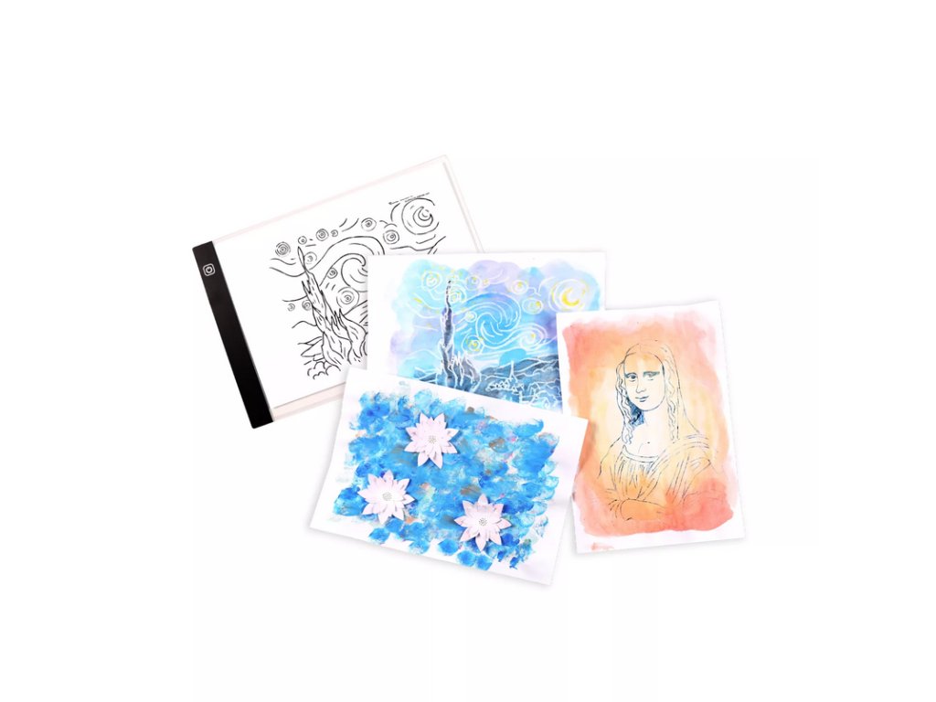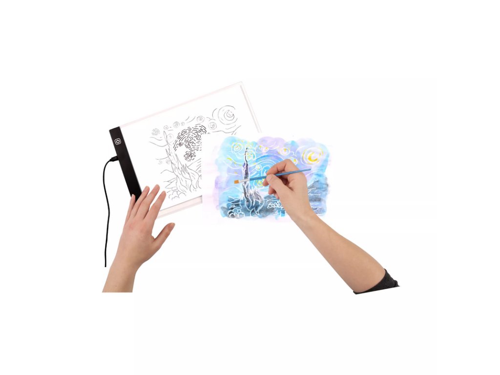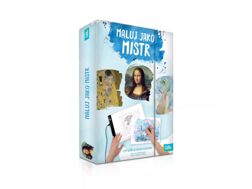 Se svíticí LED tabulkou, která se dobíjí přes USB kabel, mohou děti podle návodu obkreslovat známá díla a vytvářet tak kousky poddobné těm mistrovským! V pracovním sešitě se dozví základní principy malby (o světle, tvarech, struktuře....), umělecké směry, stručné životopisy vybraných umělců a zajímavé informace o barvách a barevném spektru.