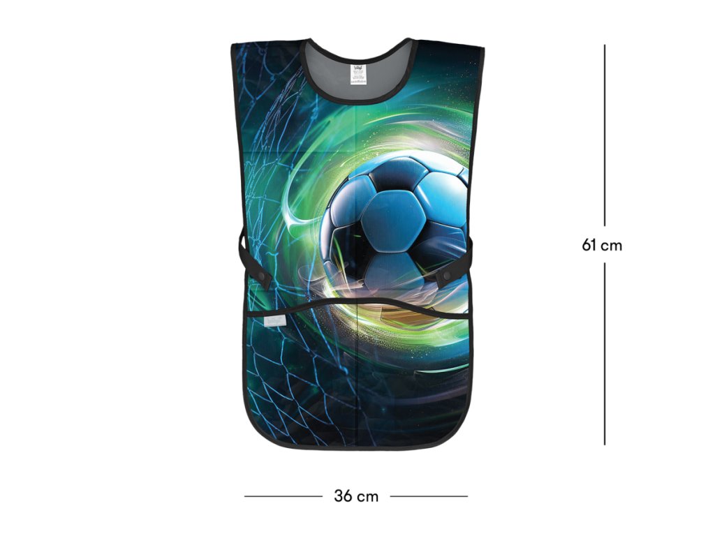 Tato zástěra je vybavena dvěma praktickými kapsami v dolní části, kam si mohou děti uložit své malířské náčiní nebo drobné poklady. Materiál zástěry je omyvatelný, což usnadňuje její údržbu a udržuje ji vždy čistou. S motivem fotbalového míče bude tato zástěra nejen praktická, ale i stylovým doplňkem pro malé nadšence sportu. Buďte připraveni na kreativní experimentování s touto pohodlnou a funkční dětskou zástěrou!
