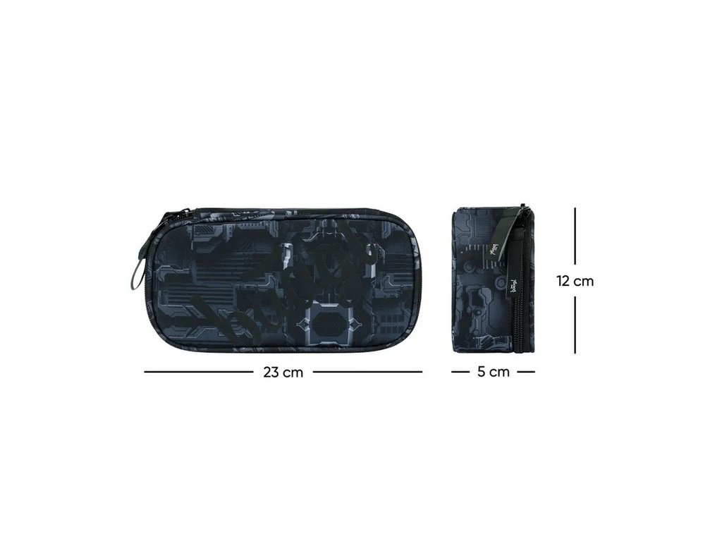 školní penál se dvěma chlopněmi uzavíratelný zipem ergonomicky tvarovaná, rukojeť zipu přihrádky pro usnadnění organizace školních pomůcek