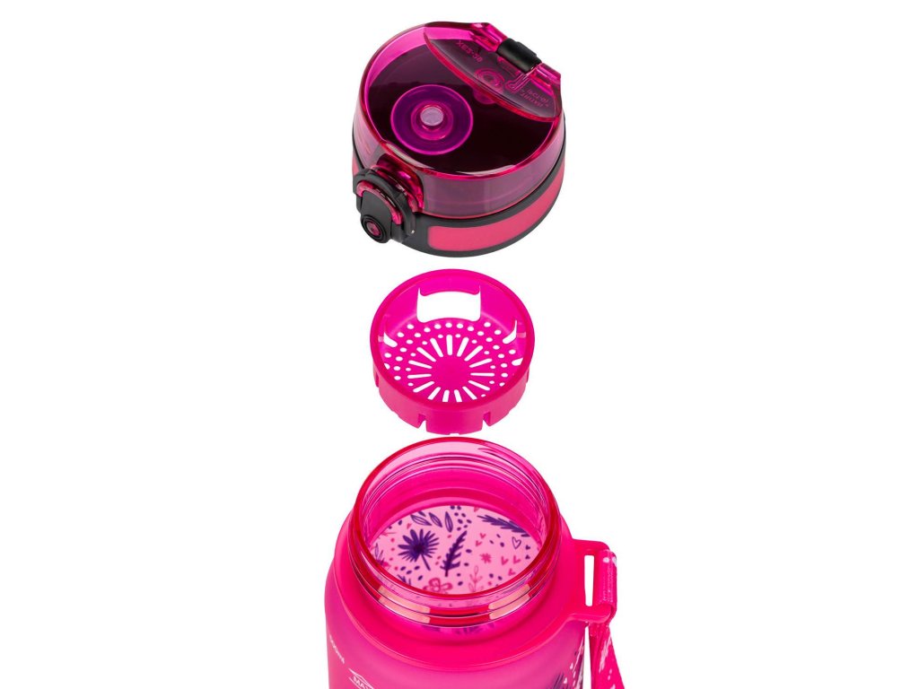 Uzamykatelné víčko nepropustí ani kapku nápoje a zaručuje jednoduché a intuitivní používání. Součástí láhve je i sítko, díky kterému můžete láhev použít i na limonády s ovocem nebo čaj (materiál je vhodný i pro horké nápoje). K láhvi je připevněné také poutko pro pohodlné nošení v ruce.