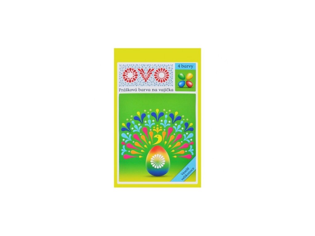 Sada 4 ks barev na vajíčka v prášku ve 4 barvách (červená, modrá, zelená, žlutá), množství 4 x 5 g.