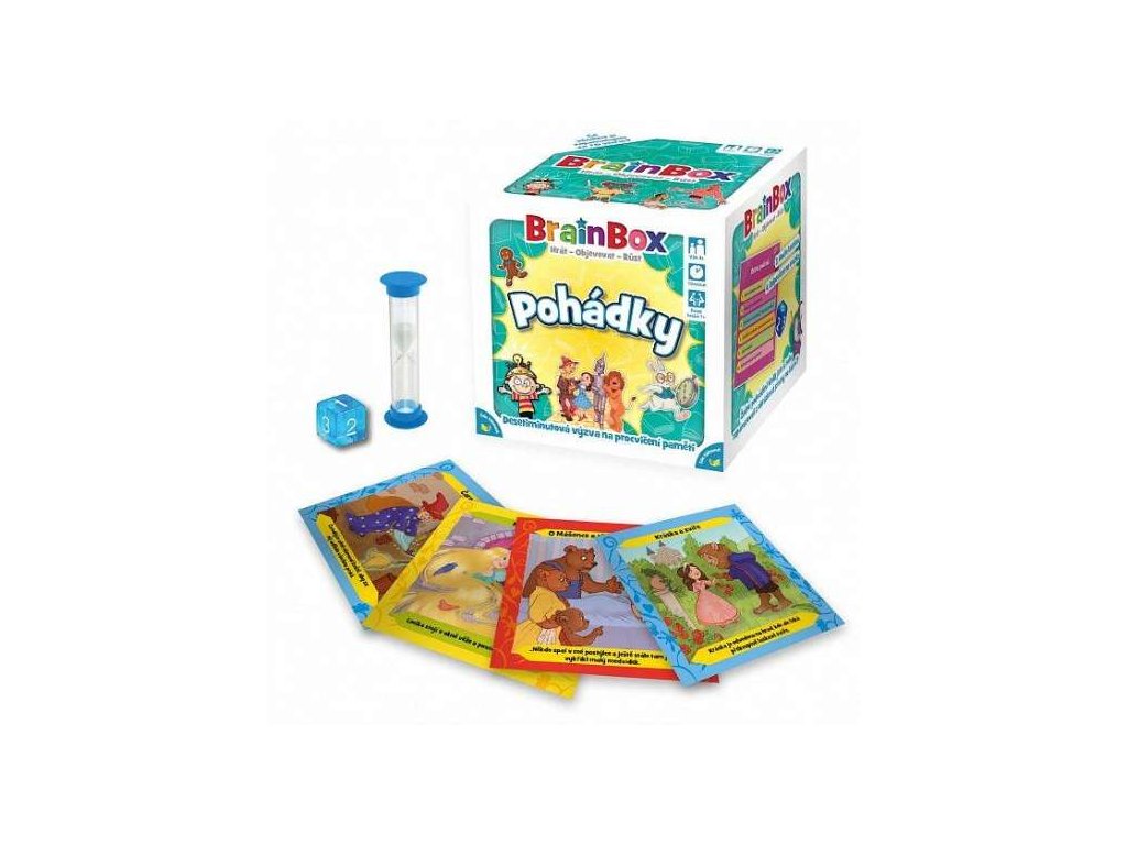 Hra na procvičení paměti, pozorovacích schopností a znalostí Tento okouzlující BrainBox, ve kterém se děti snaží zapamatovat momenty ze známých příběhů a pohádek, pomáhá procvičovat pozorovací schopnosti a paměť. Na každé kartě je vyobrazena scéna z příběhu, který se stal nedílnou součástí našich dětských vzpomínek. Rodiče mohou při této zábavné hře sdílet vlastní vzpomínky s novou generací. Cílem hry je stát se tím, kdo během 10 minut získá nejvíce karet. Je potřeba pozorně prostudovat obrázek na kartě a poté správně odpovědět na položenou otázku. Obsah balení: 55 karet, 1 karta s pravidly, 1 přesýpací hodiny, 1 kostka.