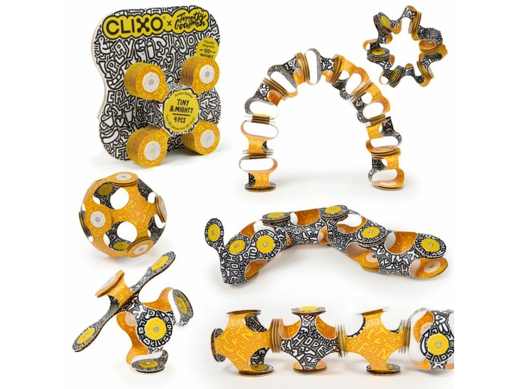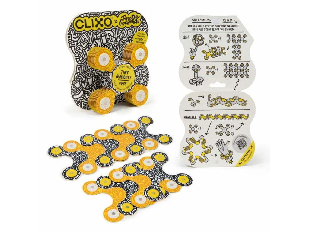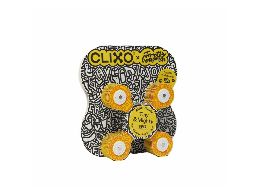 Designová sada Artist Edition představuje charakteristický umělecký styl Timothyho s jeho geometrickými kresbami, které zaplnily stěny, obaly, oblečení, obálky časopisů a jiné. Známá je i jeho spolupráce s věhlasnými jmény a značkami jako např. Apple, Nike, Google, Samsung, McDonald's a mnoha dalšími. Stavebnice je inspirována origami, ale je založena na principu spojování různých tvarů a dílků přichycením magnetů k sobě. Stavebnice Clixo je nejenom skvělá Montessori hračka, ale používá se i jako antistresová či relaxační pomůcka pro děti i dospělé. Tato cestovní umělecká sada umožňuje postavit až 100 různých staveb a vytvářet takové kombinace, které podtrhnou jedinečnost použité grafiky a posunou tvůrce do dalších kreativních možností. Uvedené výtvory mohou být zajímavé nejenom pro děti, ale díky danému designu mohou být i ozdobou interiéru. Inspirace pro různé stavby naleznete uvnitř papírového balení. V tomto unikátním a originálním balení kapesní velikosti dostáváte do rukou umělecké dílo, se kterým se Vám otevřou dveře do světa grafiky, originálních nápadů a výjimečné tvorby. Tato sada se skvěle hodí i jako doplněk k jakékoliv jiné sadě.