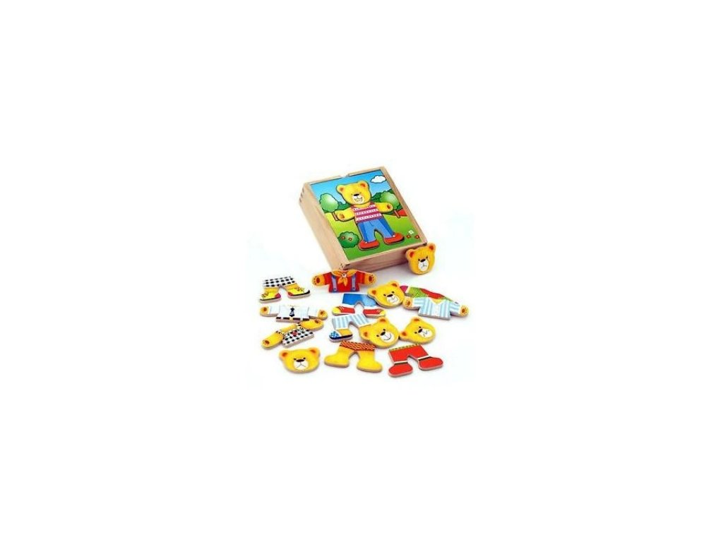 Sada obsahuje 18 dílků (6 x obličej medvídka - každý v jiné náladě, 6 x horní část těla a 6 x kraťasy), které lze libovolně sestavit na speciální podložce, která je zároveň víkem krabice.