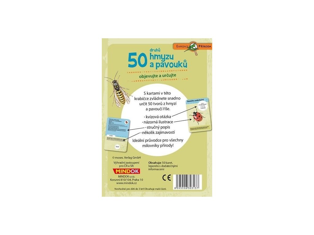 - Obsahuje 50 kartiček hmyzu a pavouků