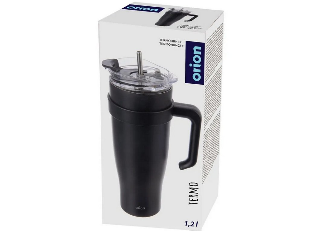 Hrnek TERMO pohár nerez/UH+brčko 1,2 l černá