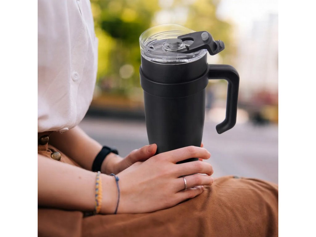 Termohrnek černé barvě udrží nápoj v požadované teplotě po dlouhou dobu – studený až 8 hodin a teplý až 12 hodin, nicméně vše záleží na podmínkách, plnosti nádoby a okolní teplotě. Určeno pro nošení ve svislé poloze: víčko je navrženo tak, aby minimalizovalo únik tekutiny během přenášení a konzumace, ale nedoporučujeme jej naklánět, převracet nebo nosit v tašce ve vodorovné poloze.