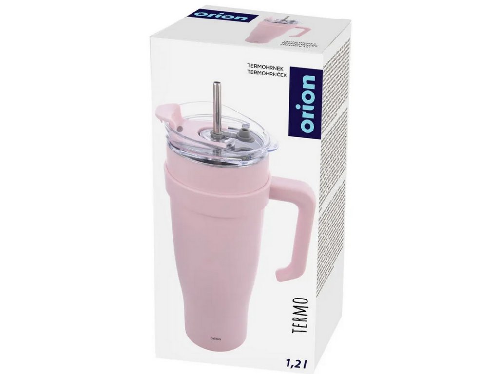 Hrnek TERMO pohár nerez/UH+brčko 1,2 l růžová