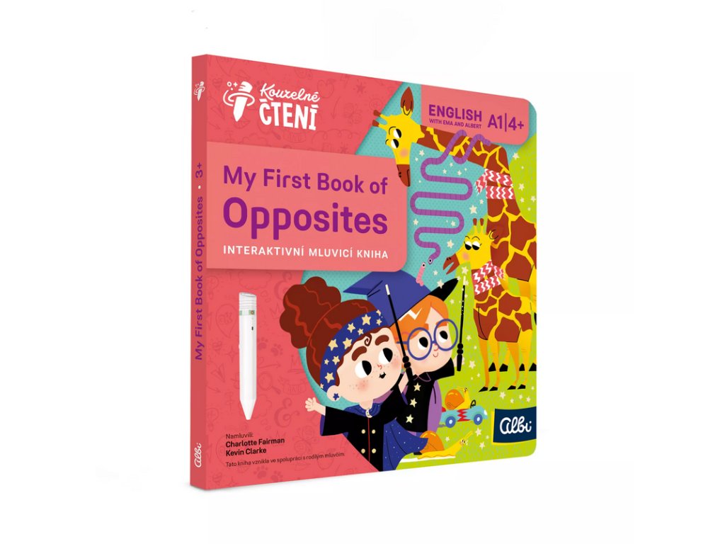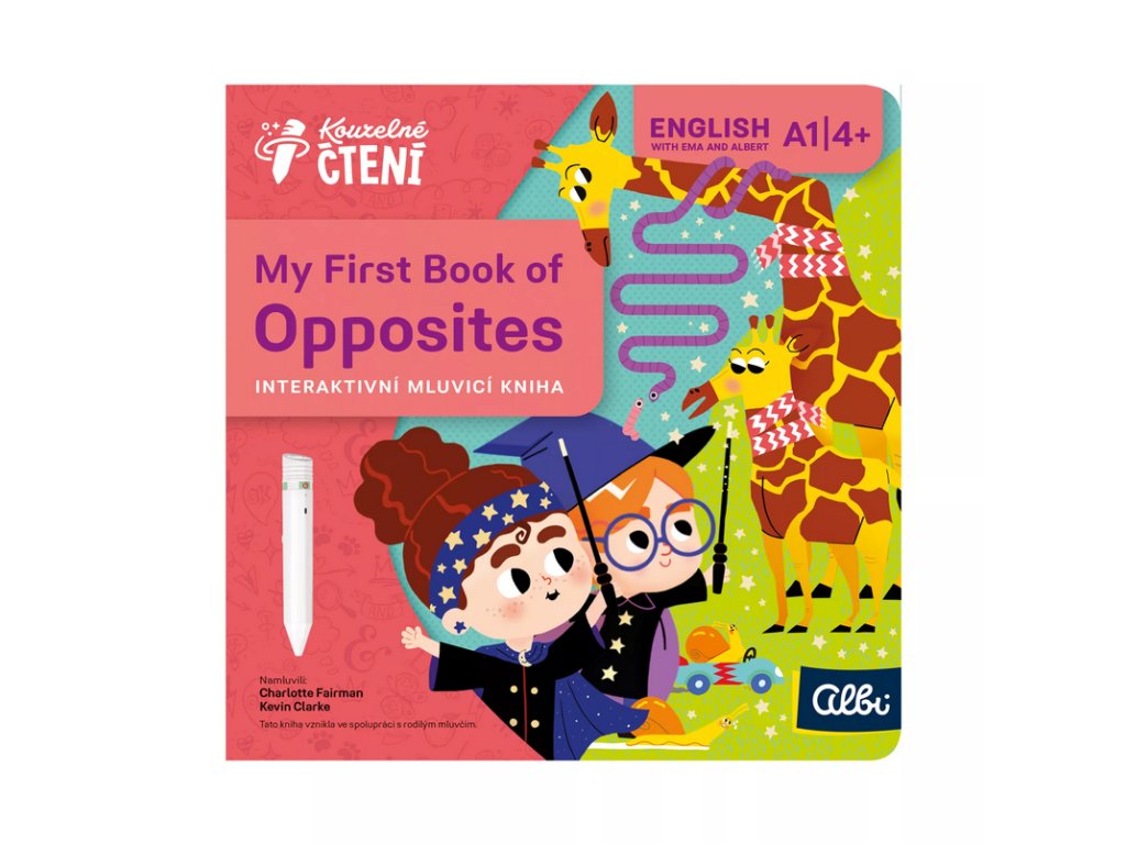 Kniha My First Book of Opposites z edice English with Ema and Albert vznikla ve spolupráci s rodilým mluvčím a pedagogem Dunstanem Clarkem.