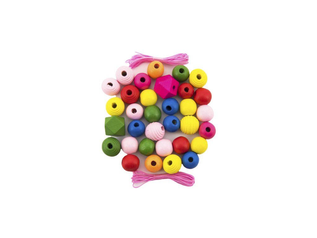 V sadě najdete různé druhy a tvary korálků, které mají pestré a veselé barvy. Součástí jsou gumičky, na které si děti mohou navlékat korálky dle své fantazie, náramky a řetízky jsou poté roztahovací. Vzniknou tak jedinečné módní doplňky. Plastová dóza obsahuje 54 ks korálků. Dřevěné maxi korálky jsou vhodnou hračkou pro rozvoj dětské motoriky, trpělivosti i fantazie. Rozměry balení 7 × 11 × 7 cm. Vhodné pro děti od 3 let.