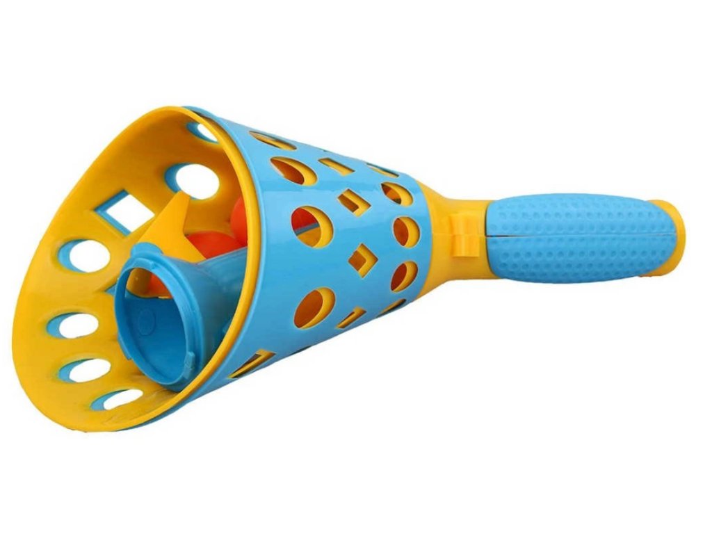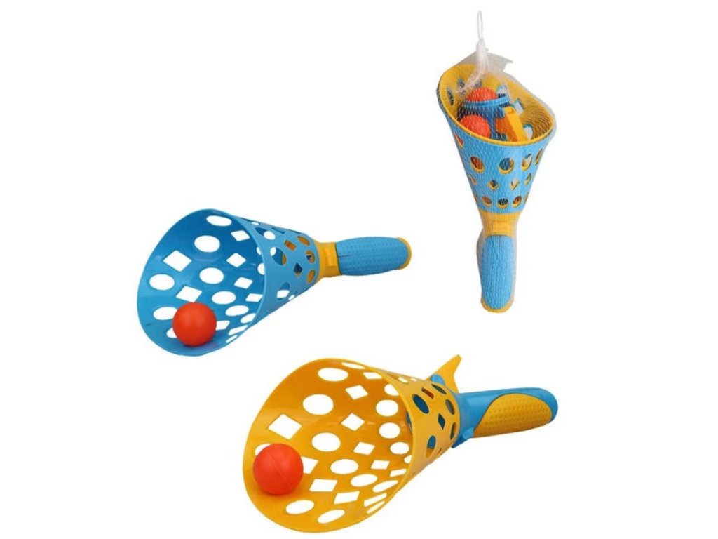 Zábavná hra nejen na léto, určená pro dva hráče. Jeden hráč míček vystřelí z košíku a druhý ho pomocí druhého košíku chytá.