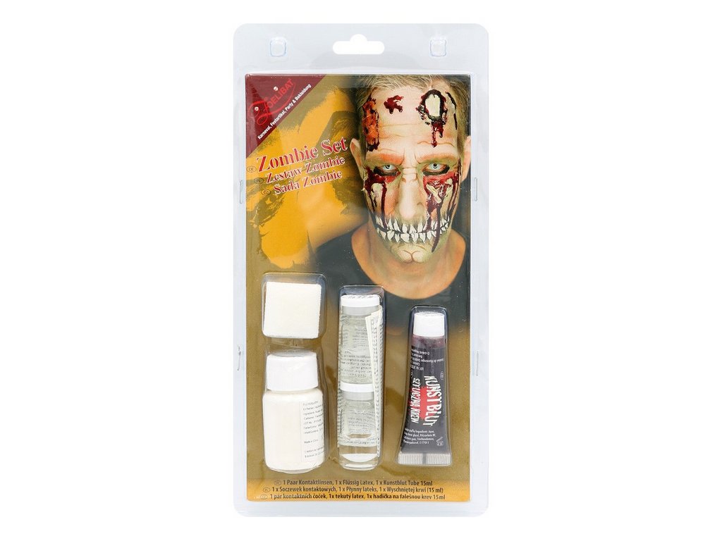 Maskovací sada ZOMBIE s BÍLÝMI kontaktními čočkami