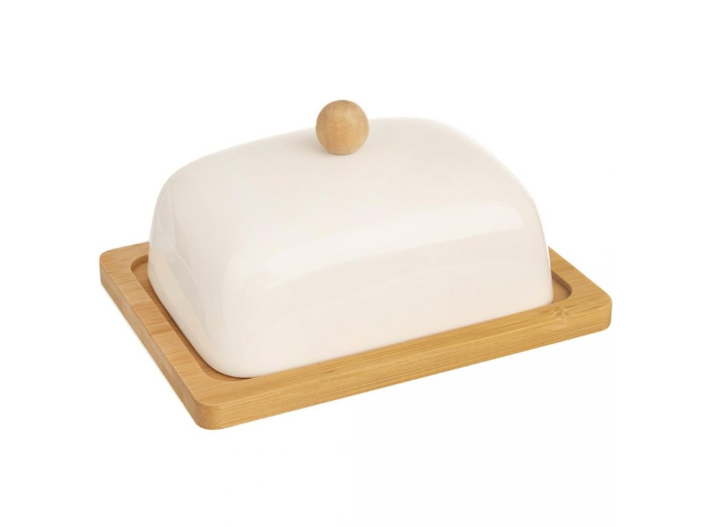 Máslenka na uložení másla v chladničce je vhodná i na servírování při snídani. Materiál: porcelán, bambusové dřevo. Rozměry: 16,5x12,5x8,5 cm. Není vhodná do myčky nádobí.