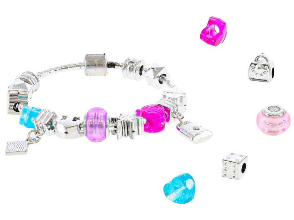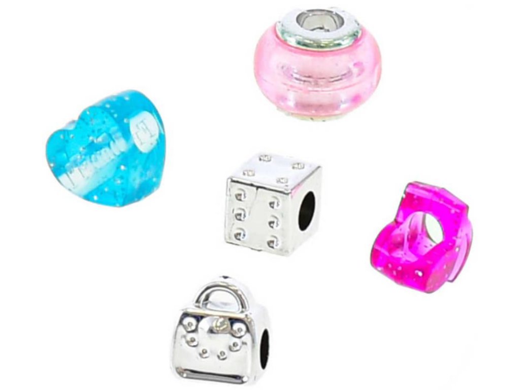 Sada korálků obsahuje 3 druhy korálků, 2 bavlnky k navlékání a další doplňky.