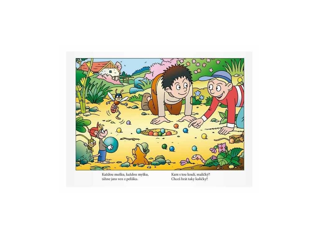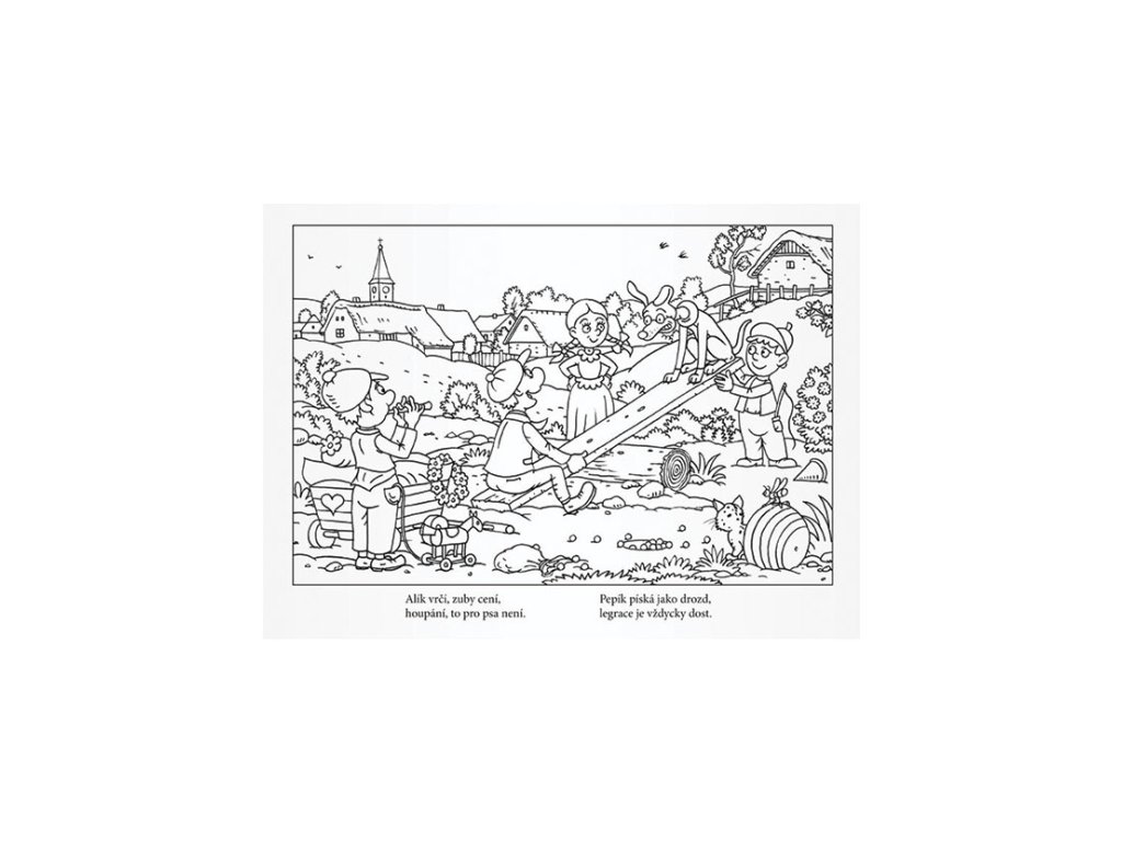 Počet předloh k vymalování: 8 (cvrnkání kuliček, vití věnečků, houpání na houpačce, aj.) - U každého obrázku je básnička.