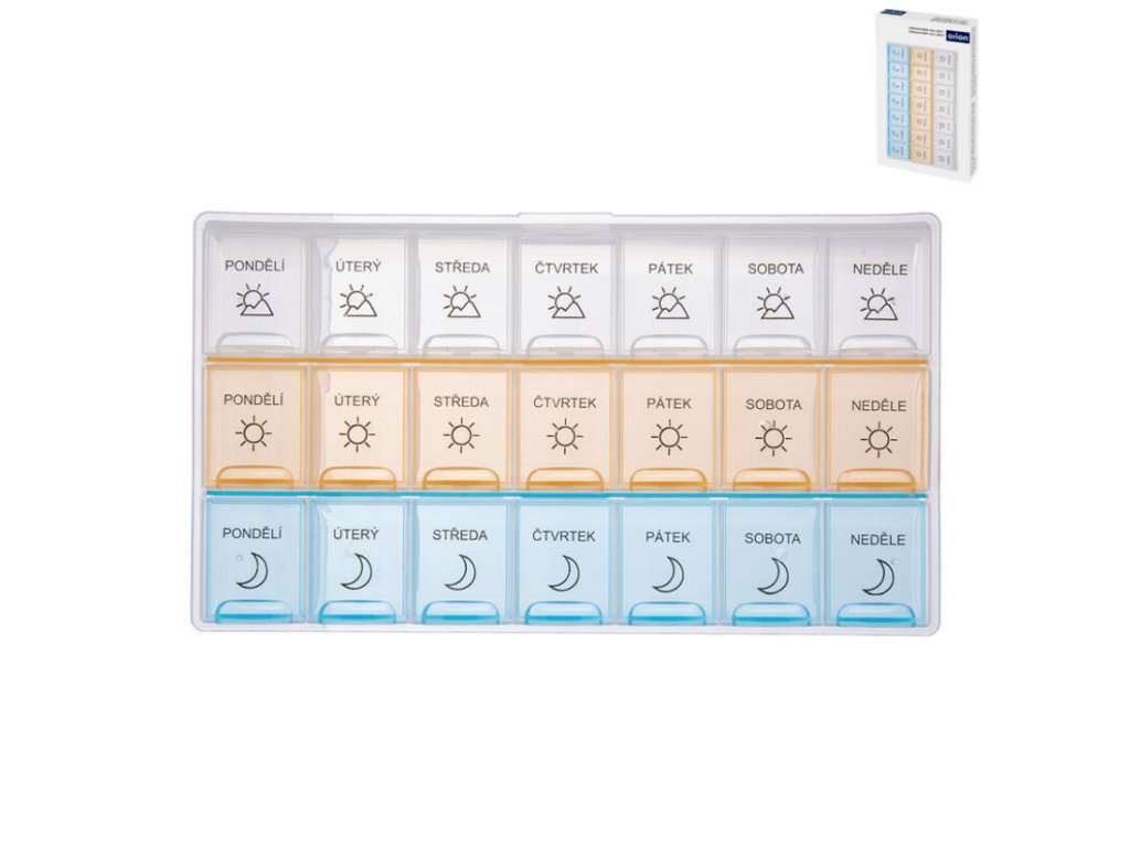 Do každé přihrádky si můžete připravit dávku léků na ráno, poledne a večer v daný den v týdnu.
