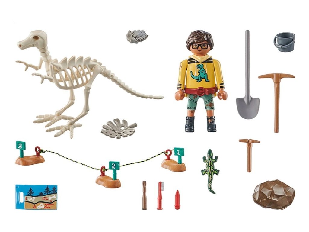 - Ve 35dílné stavebnici Playmobil najdou 1 figurku paleontologa, dinosauří kostru, ještěrku a 2 zkameněliny