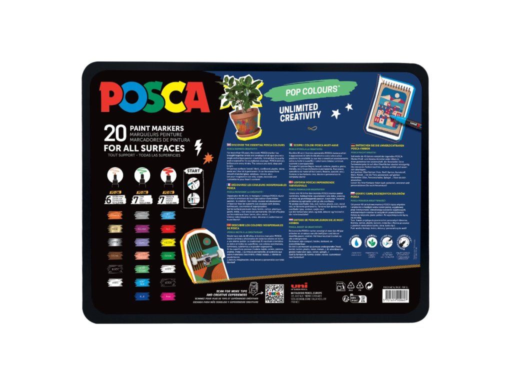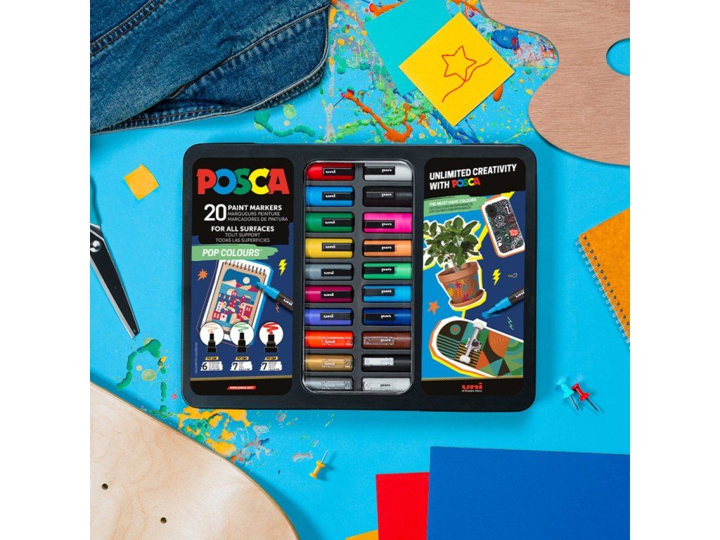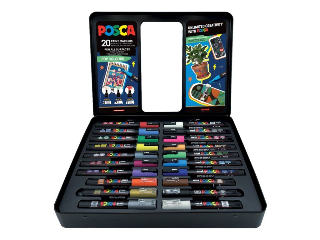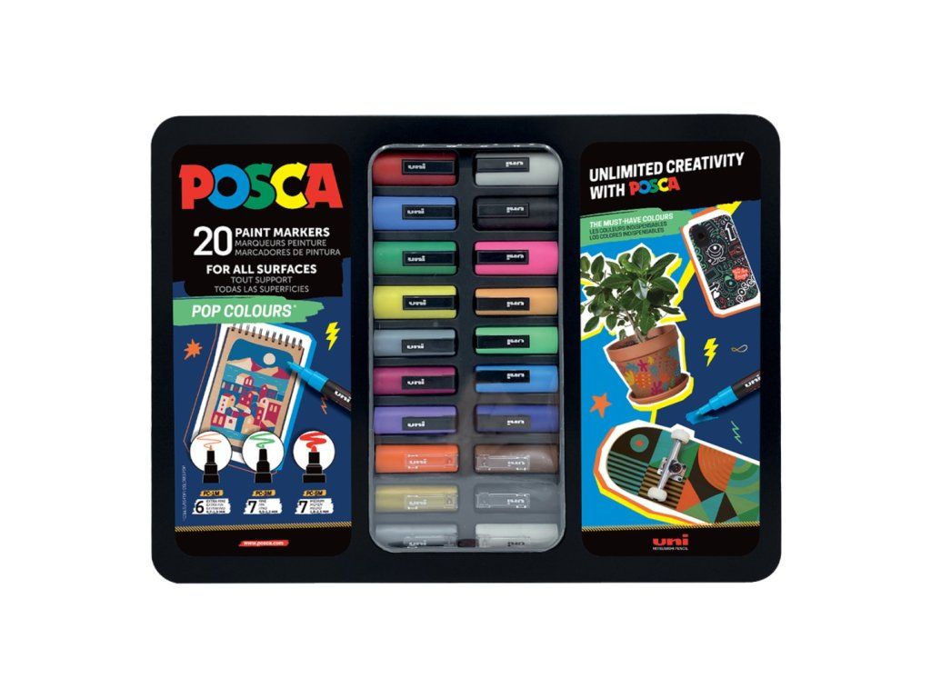 POSCA sada popisovačů, POP, mix 20ks v kovovém boxu