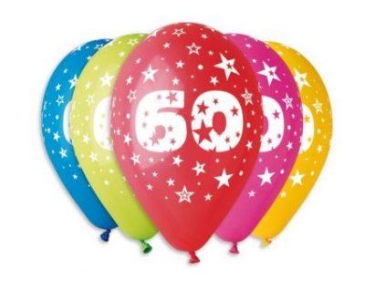 Mix barev s potiskem číslice 50, průměr: 30 cm. Balení obsahuje 5 ks balónků.