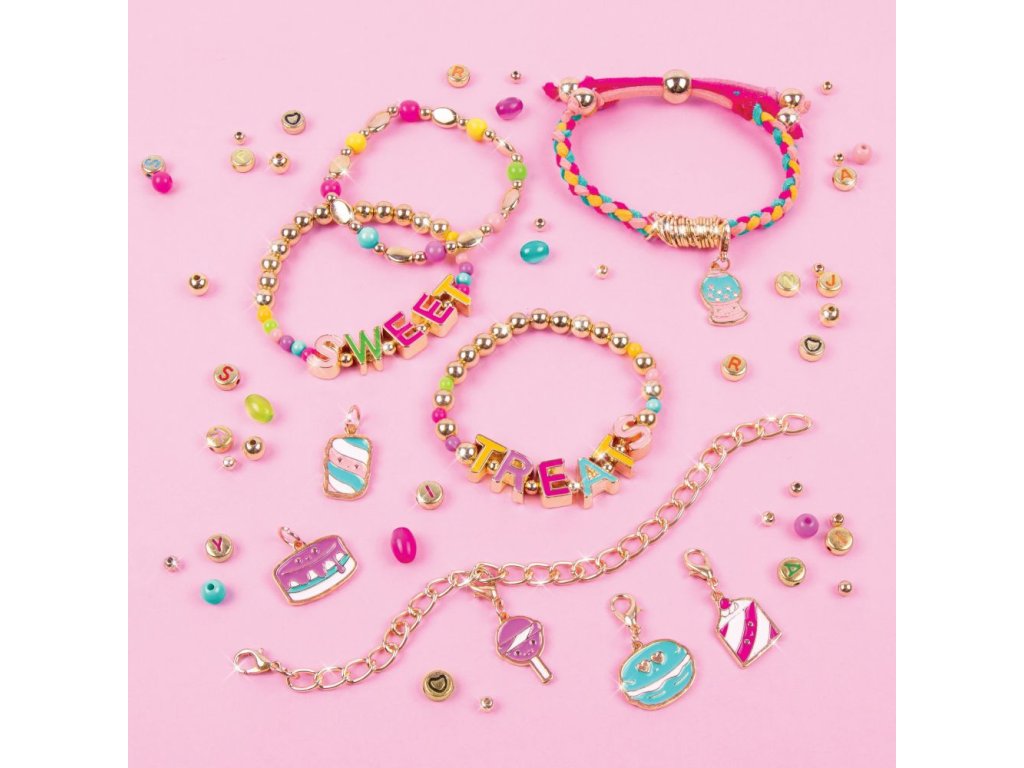 Sada obsahuje: 4 barevné voskované šňůrky (50 cm), 1 čirou elastickou šňůrku, 1 bavlněnou šňůrku (50 cm), 265 korálků, 6 přívěšků a 1 řetízkový přívěšek. Vyrobte si náramky dle vlastní představy.