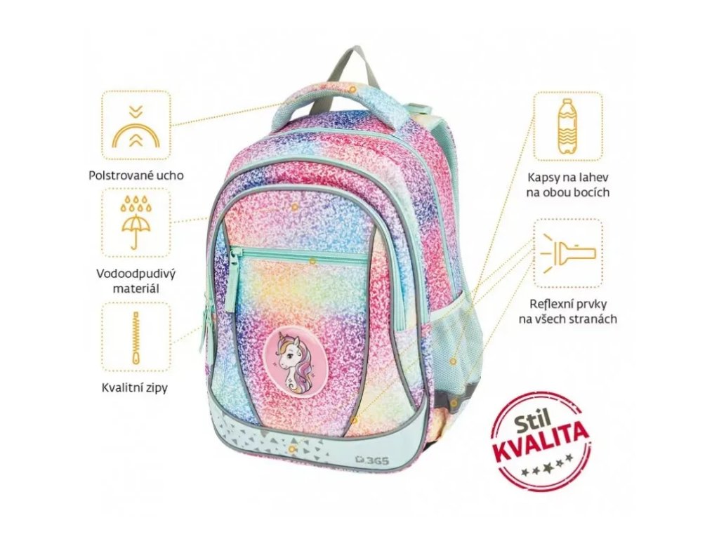 - BEZPEČNOST – bezpečnostní prvky jsou velmi důležité, proto je batoh vybavený reflexními prvky na všech stranách batohu, které zaručí lepší viditelnost a bezpečnost dítěte ve tmě