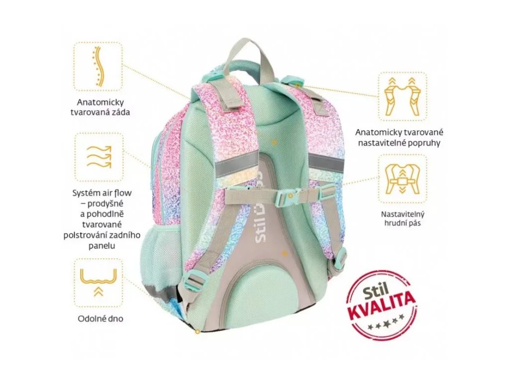 - 3D ZÁDOVÝ SYSTÉM – batoh perfektně sedí na zádech. Anatomický zádový panel se přizpůsobí páteři dítěte a prodyšné polstrování umožní cirkulaci vzduchu a příjemné nošení