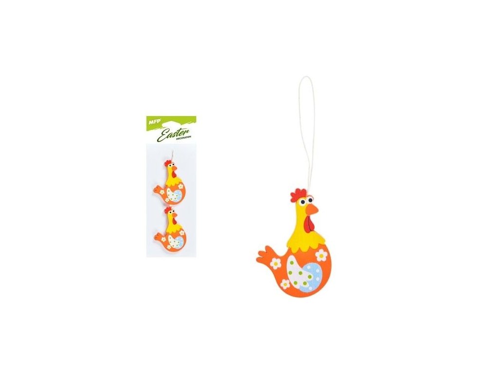 Velikonoční dekorace dřevěná - závěs s motivem slepice 2 ks - Vyzdobte si byt velikonočními dekoracemi a přivítejte tak svátky jara. Tuto dekoraci můžete použít na dekorování velikonočních věnců nebo větviček. BALENÍ OBSAHUJE: - 2 ks dekorací (slepice) Barva: červená Velikost: 6,5 cm Dekorace má provázek na zavěšení. Uvedená cena je za 1 balení.