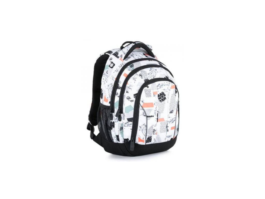 Tříkomorový prostorný studentský batoh vhodný od 4. třídy ZŠ. Anatomicky tvarovaná záda s příjemným polstrováním a polstrovanými ramenními popruhy. Dvě boční kapsy na láhev. Organizér, látkový vývod na sluchátka. Reflexní prvky. Extra lehký, hmotnost pouze 0,7 kg!