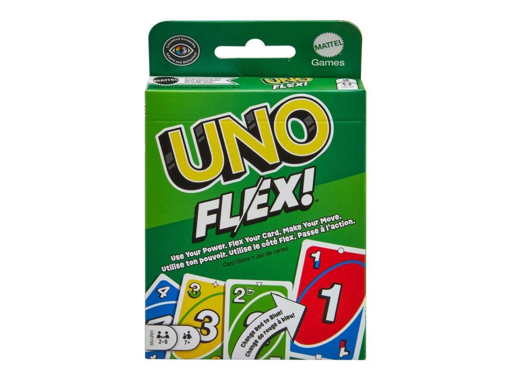 Speciální karty umožňují hráčům změnit barvu karty, aby mohli hrát: červená 4 se může stát zelenou 4 díky „flexi“. Síťové karty a karty Flex Action dodávají hře ještě více zvratů! Ideální pro hraní s rodinou, na večírku nebo během herních večerů, je ideálním dárkem pro fanoušky UNO a karetních her ve věku 7 a více let.
