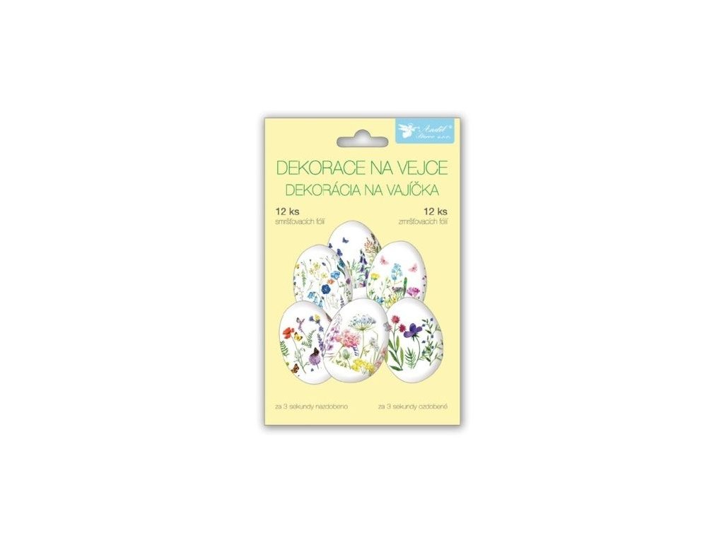 Smršťovací dekorace na vejce - jemné květiny (různá provedení), 12 ks NÁVOD: Použijte vychladlá uvařená vejce. Na vejce navlékněte dekorační fólii, potom položte lžíci a ponořte na 3 sekundy do vroucí vody. Fólie se okamžitě obepne kolem vajíčka.