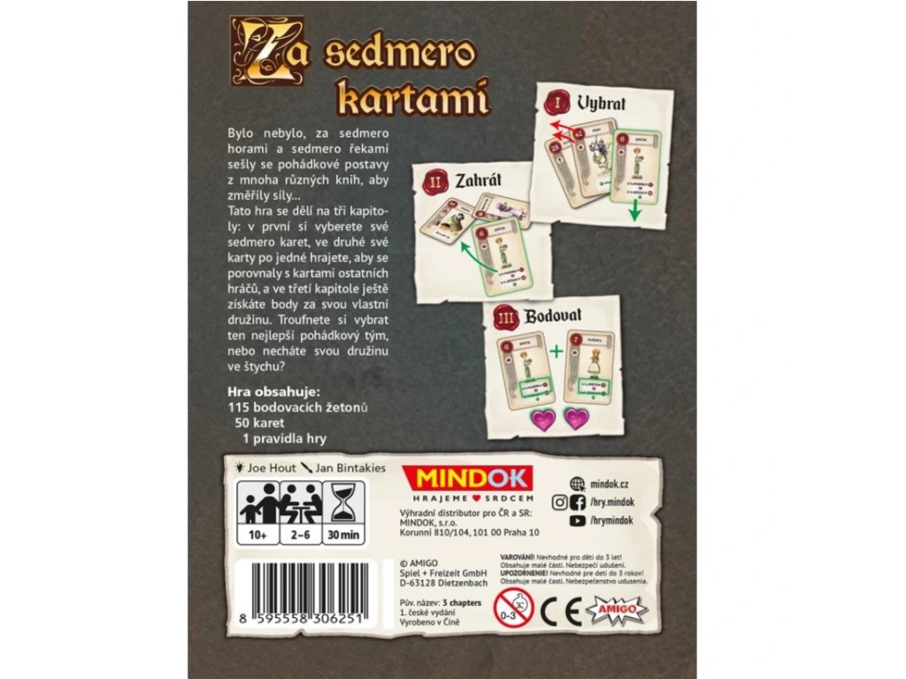 Za sedmero kartami je hra, která zaujme jak milovníky karetních her, tak i ty, kteří mají rádi pohádky a strategické plánování. Hra nabízí dynamický herní zážitek s prvky náhody i taktiky a je vhodná pro rodinné hraní i setkání s přáteli.