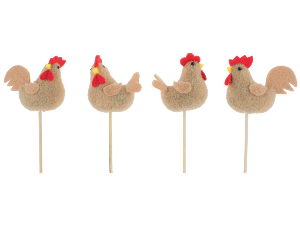 Slepička, kohoutek zápich 5,5 cm + špejle, Uvedená cena je za 1 kus, dodáváme dle skladové dostupnosti.