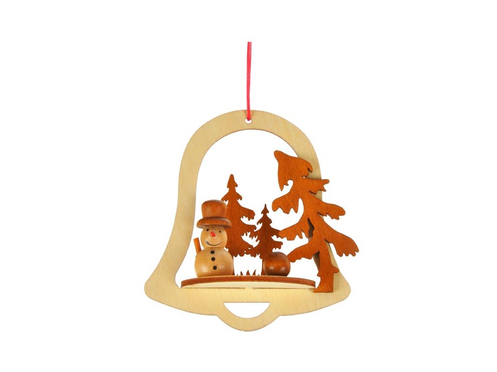 Vánoční dekorace - sněhulák v domečku na pověšení. Vyrobeno ze dřeva.